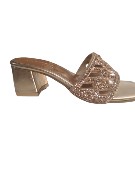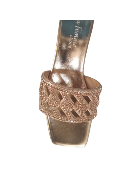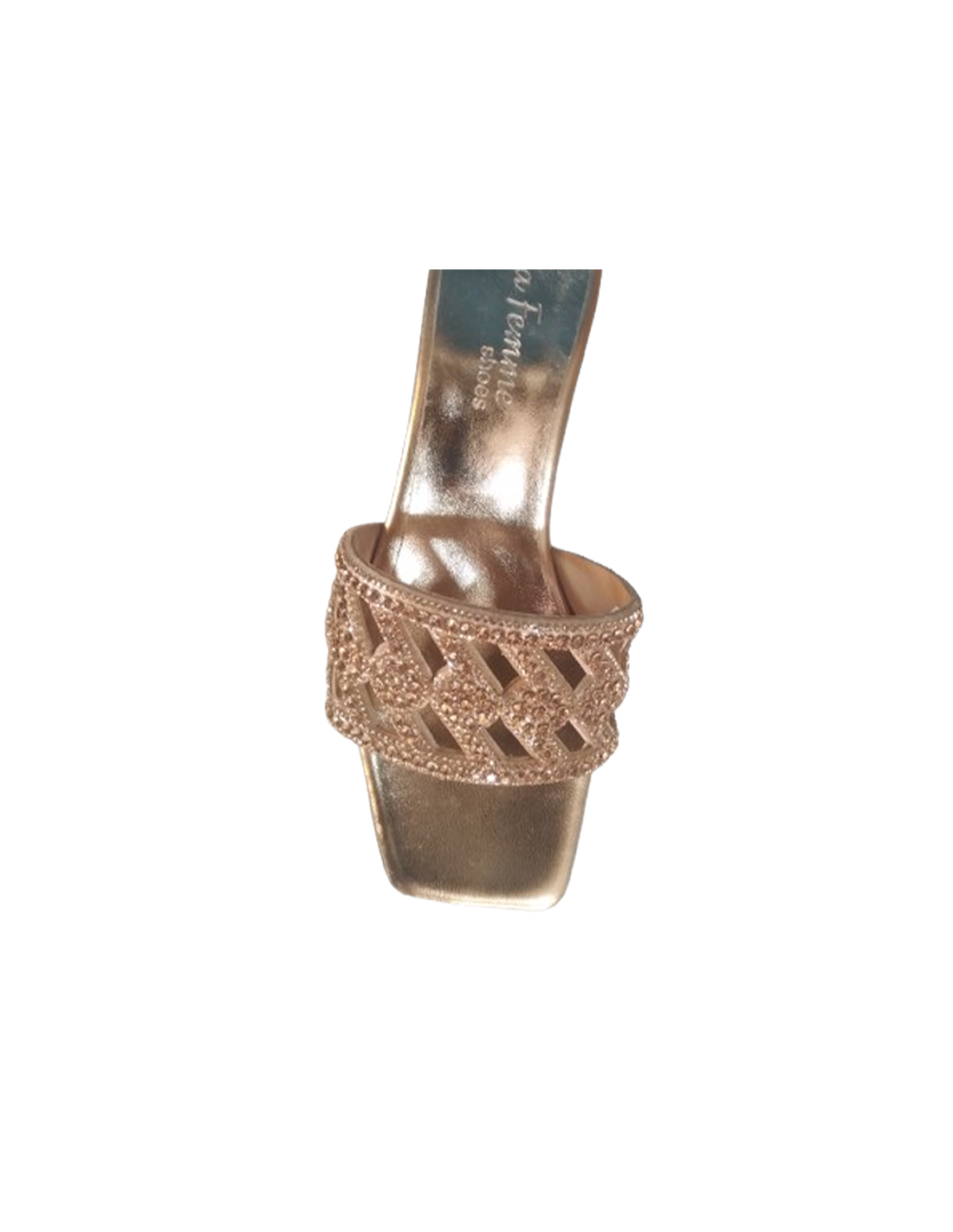 sandales dorées à paillettes pour femme avec bout carré, idéale pour soirée de mariage