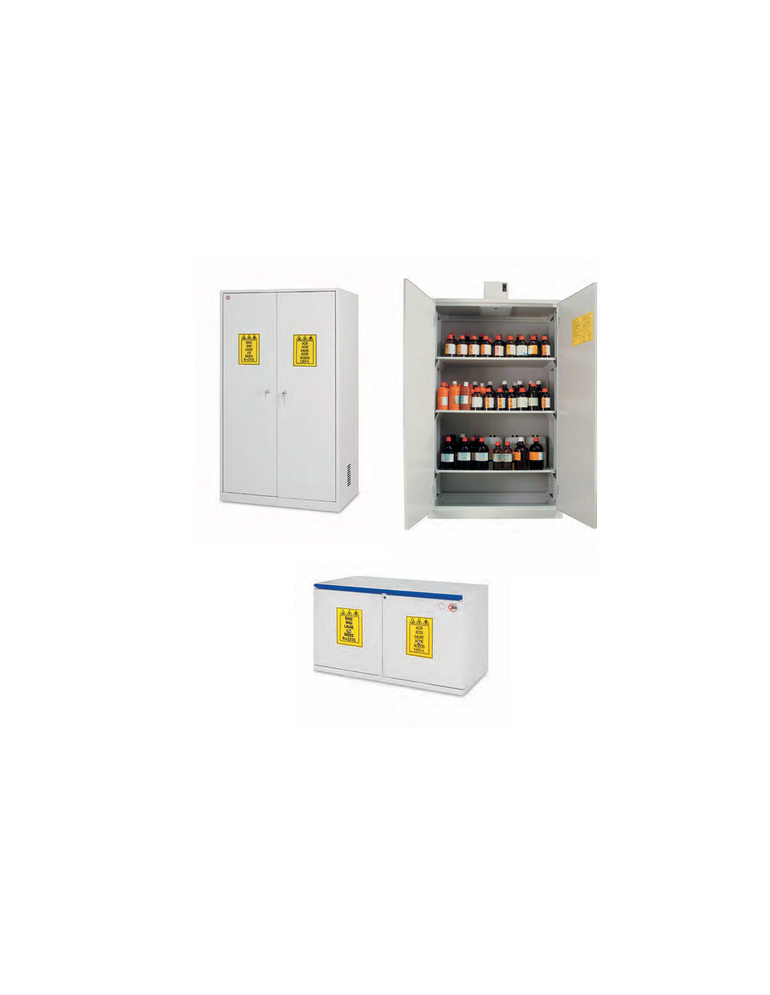 Armoires pour produits chimiques : acides et bases pour séparation.