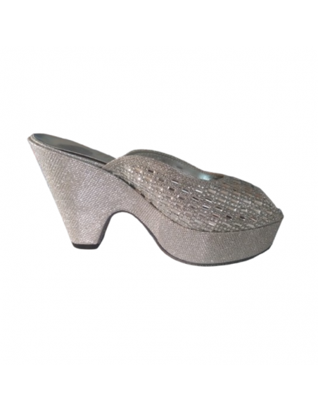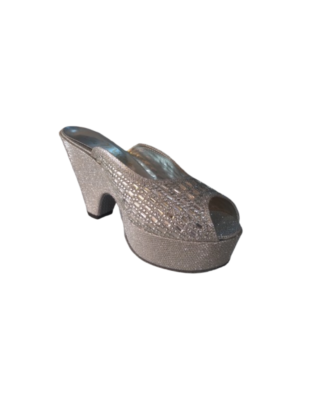 Cette somptueuse sandale à talon haut est un choix idéal pour sublimer vos tenues lors d’événements spéciaux tels que les mariages, soirées, ou fêtes de fin d’année. Conçue avec une finition argentée brillante, elle est entièrement ornée de strass et de perles scintillantes qui captent la lumière à chaque pas. Son talon compensé assure une meilleure stabilité tout en allongeant la silhouette, et son bout ouvert ajoute une touche glamour. Le design élégant et raffiné de cette sandale allie confort et style pour un look sophistiqué.