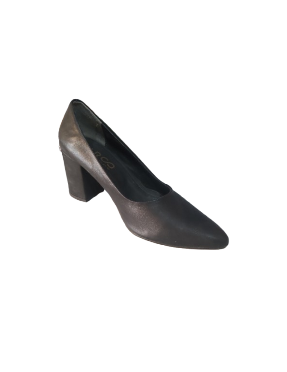 Escarpin noir chic avec talon bloc confortable, idéal pour le bureau comme pour les soirées.