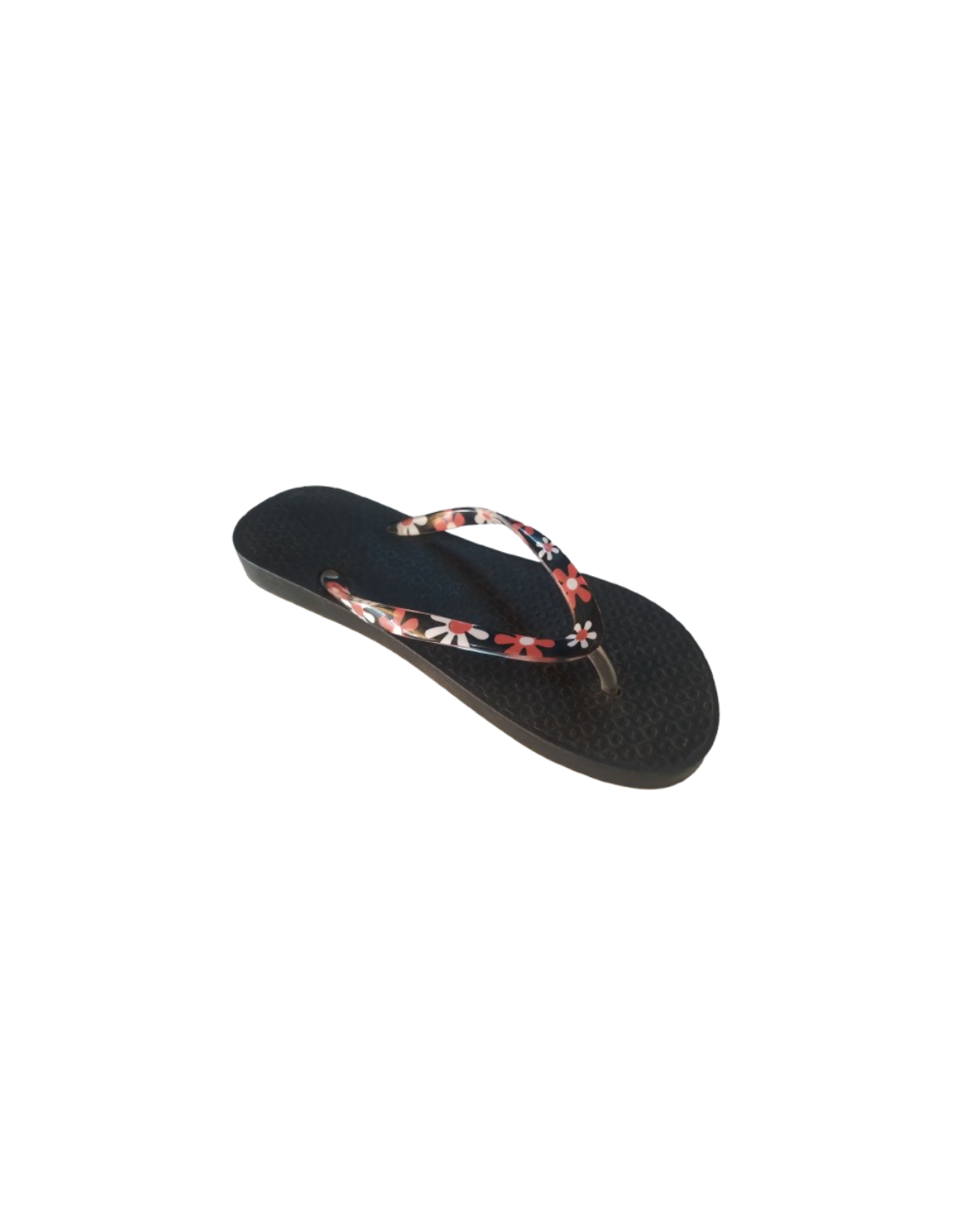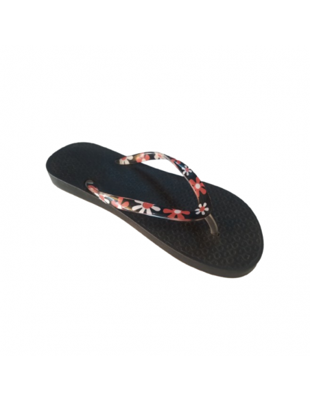 Tongs noires – Bride blanche à fleurs colorées