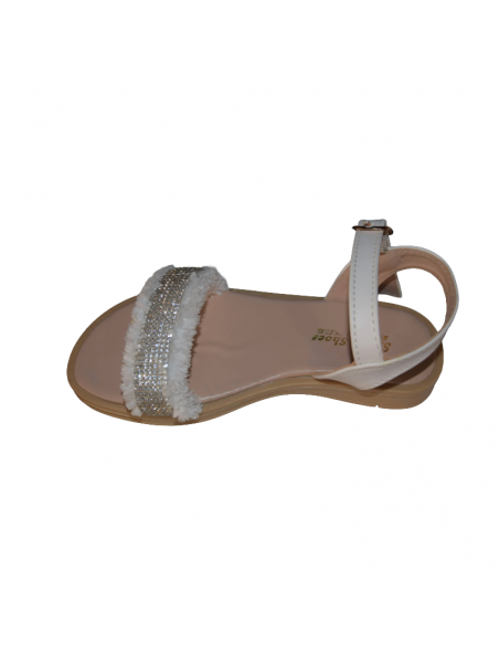 Sandales fille blanches avec bride strass et fourrure