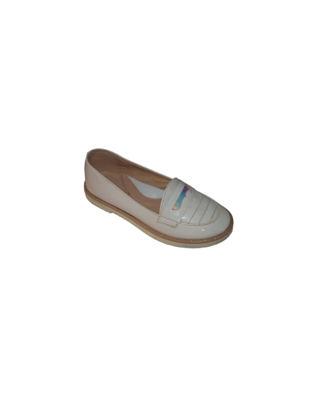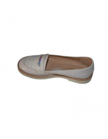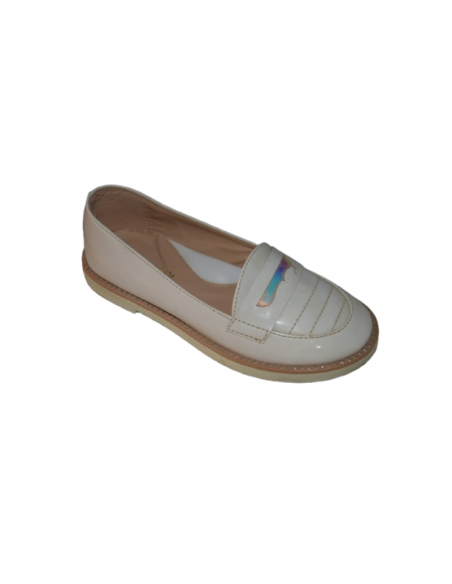 Mocassins enfant beiges vernis avec détail irisé